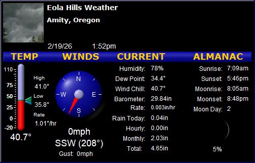 Current Amity Oregon (Eola Hills) Weather Conditions